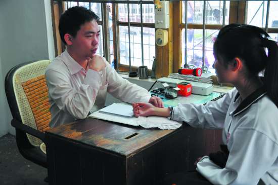 17日上午,记者经过打听找到了位于老市区升平路这户中医,医生名叫张飞鹏。尽管临近中午时分,但仍陆续有病人前来看诊。记者打量眼前这位年轻的中医生,看病态度温和,耐心细致。临近高考,一名女学生出现头昏脑胀的不适症状,前来找张医生看诊。“刚放学是吧,这两天身体怎么了?”张医生进而详细地询问这名女学生的病症,把脉、开处方后,叮嘱女生高考后再通过中药调理一下身体。