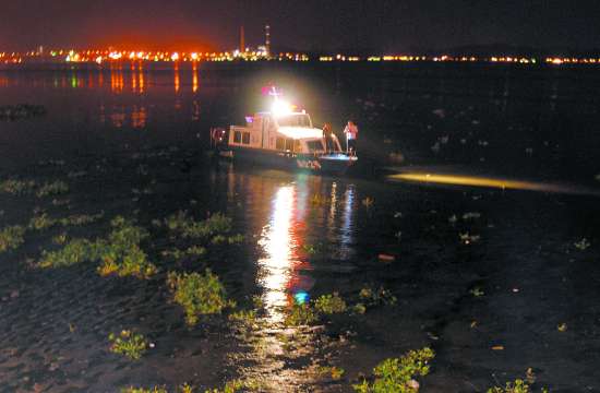 当晚11时多,在汕大医学院第一附属医院的急诊科诊室,记者看到了躺在病床上正在输液治疗的轻生男子何某。“幸亏救援及时,如果男子被发现时间再拖延几分钟,他就可能溺死了”医生告诉记者。据参加救援的水上派出所副所长詹钦和介绍,18日晚上8时30分左右,他们接到了110的警情指令,有群众报警称在东厦路和海滨路交界处,有一男子跳海轻生。人命关天,詹钦和马上带领民警分水、陆两路前往现场开展救援行动。当时正处退潮阶段,公安快艇在迅猛潮水中艰难前进,十分吃力,而且又是夜晚,海面漆黑一片,给搜救工作带来了很大的难度。“时间对于溺水者来说十分珍贵,早一分钟救起,就多一份生还希望!”,民警利用快艇上的探照灯来回仔细搜索宽阔海面,但由于近岸处海面满布了水浮莲等垃圾杂物,环境复杂,给救援行动再次带来了工作难度。
