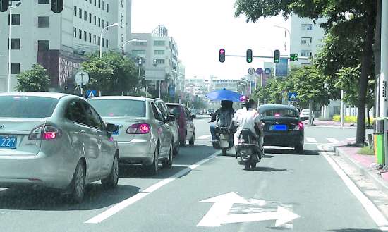 记者在现场观察了一阵发现,仍有相当部分驾驶员没有留意到路口红绿灯指示的变化,依然占据着右转车道等待左转,致使一些要右转的车辆难以通行,因此在后面拼命地按喇叭,有些不耐烦的驾驶员则猛打方向盘转入中间的直行车道,又差点与疾驰而来的直行车发生刮擦……为此,有必要提醒驾驶员,行车时切莫总是依赖“习惯”,一定要留意地面交通指示线和红绿灯的指向,按交通指示标志的指向通行。
