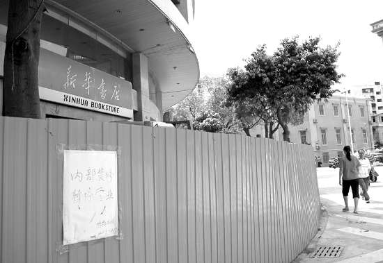 本报讯(记者杨立轩 摄影报道) “外马路新华书店停业了?”昨天上午,本想购书的陈先生来到外马路与利安路交界处时意外发现,经营多年的新华书店内没有工作人员上班,原本摆放各种书籍的书架也消失一空。记者随后联系书店负责人获悉,装修多年的新华书店部分电线老化,目前已全面停业,待装修完工后将重新开业。