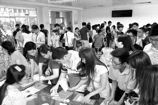 记者看到,登记处3、4名工作人员忙得团团转,既要负责发放表格、指导新人填写,还要审核资料、录入信息,再制作结婚证等,好几名工作人员从进入工作状态后就马不停蹄在办理登记,连一口水都没空喝。据了解,为了应对“5·20”这个特殊日子,昨天早上,金平区民政局婚姻登记处工作人员足足提前了一个小时上班,接受登记办理,然而很多市民在早晨7点半前就已经前来排队。金平区民政局婚姻登记股负责人杜惠璇告诉记者,春节过后这几个月结婚登记数量偏少,有时一天才几对新人登记,但昨天的数量很多,工作人员主动放弃中午休息,加班赶制结婚证,让所有新人能够当天登记当天领证。