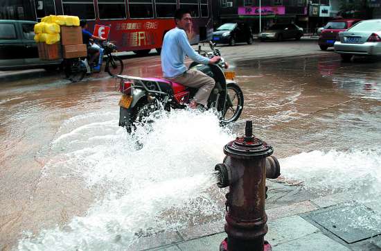 昨天上午10时30分,接到读者报料后,记者迅速来到现场,看到位于路旁人行步道上的一个红色消火栓的三个阀门都开启着,向外喷射着水流,马路成了一片“汪洋”。路旁的机动车和行人见状,都减速绕开行驶通过,以免被喷淋一身。记者上前仔细观察,消火栓完整无损,三个阀门也没有受损迹象。据现场的市自来水总公司工作人员介绍,昨天上午10时许,供水部门对附近供水管网进行维护,因为维护过程中需要开启、关闭供水管道控制闸门,开、闭水闸过程中的巨大压力也会造成供水管道内壁沾附的水垢掉落,并随水冲走。为确保市民正常用水,供水部门在管网维护工作完成后就打开路旁的消火栓阀门,将管道里面的水垢、沉淀物等排出供水管道外,这也是消火栓刚开启时“井喷”出暗红色水的原因。管网维护工作经过检测合格后,才能与城市管网进行对接,避免居民家中出现“红水”引发虚惊。上午10时多,供水管网中的“杂质水”被排放完后,路旁的消火栓阀门也被正常关闭。