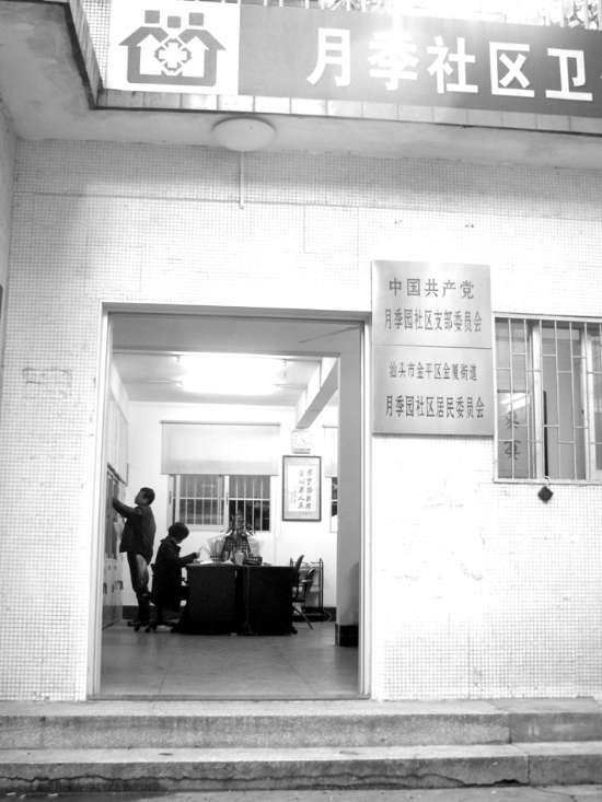 近日,记者来到金厦街道月季园居委会,一眼看去,只见居委会门口右侧一上一下仅悬挂有两块不锈钢牌匾,分别为“中国共产党月季园社区支部委员会”和“汕头市金平区金厦街道月季园社区居民委员会”,门口左侧,则挂着另一块“社区精神病防治康复点”的牌子,整个门面看起来十分干净整洁。