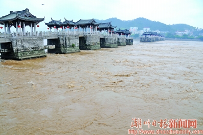 受连日尤其是19日强降雨影响,19日22时30分,韩江干流三河坝水文站出现洪峰水位44.13米(超警戒水位2.13米)、相应流量6790立方米/秒。为严防洪水冲刷损害沿江堤围,19日,市三防办发出通知,要求沿江各县区、各单位加强沿江堤围的巡查,落实防范措施。广东省潮州供水枢纽也依照《广东省潮州供水枢纽2013年防洪度汛预案》,于19日18时启动IV级洪水应急响应,加大下泄流量,蓄水位逐渐降低至8.5米(珠基)运行。截至昨天下午记者发稿,市三防办尚未收到沿江堤围受损的情况报告。广济桥文管所也根据来水流量,于18日下午4点30分提前一个小时拆开梭船,直到昨天梭船都没连上。