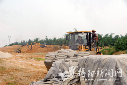 揭东区夏新路长2.16公里,宽32米,计划投资4347万元,自今年2月23日开工以来,工程进展顺利。工程计划国庆前完成全部路基及基础配套,年底前完成水泥路面建设。图为施工场面。