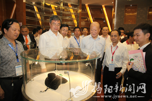 与会领导嘉宾参观“难得‘玉’见。阳美玉石展”。杨继斌 摄