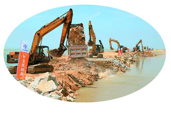 东海岸新城管理中心积极会同中交(汕头)公司,把实现抛石海堤的全面合龙作为2013年重要工作目标及防台风渡汛要求抓落实,抢抓黄金施工期,千方百计克服各种施工困难,细化施工方案,挂图倒逼进度。记者在施工现场看到,十多辆工程车接连着将一车车的巨石倾倒在剩下的20多米的海堤缺口,在大型勾机的助力下,缺口处湍急的海水逐渐趋于平静,海堤最终顺利合龙。由于近期我市多逢暴雨,铺填石料运载及施工进场道路受严重影响,但施工项目部建设者充分利用潮汐涨落及天晴空隙,全力加快进度,确保海堤安全及有效施工,甚至把每天的施工计划细化至运载多少车和推进多少米来计。