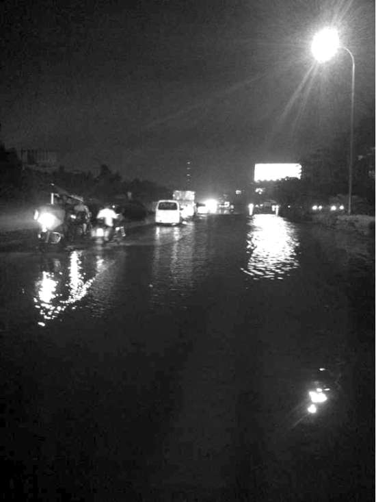 本报讯 (记者林彦恂摄影报道)近期频繁强降雨导致市区多条道路积水引发塞车,大学路安居工程至金平工业区路段情况尤为突出,途经该处的车辆犹如“河中游”。群众对此意见很大,急切盼望管理部门采取可行性措施,缓解这种状况,让大家平安顺畅地回家。