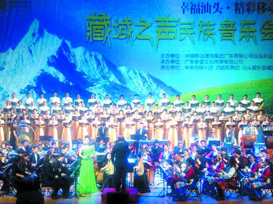 本报讯 (记者陈晓敏摄影报道)昨晚,汕头移动公司在林百欣会展中心举办“幸福汕头·精彩移动——‘藏域之声’”民族音乐会,逾百名汉族、藏族民乐艺术家同台演绎经典曲目,为汕头市民带来一场具有浓郁民族风格的音乐盛宴。