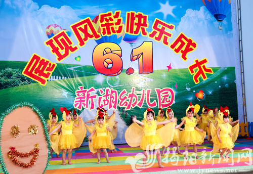 “六一”儿童节将到,全市各地的小学和幼儿园开展丰富多彩的活动,丰富了节日生活。图为揭西县一级幼儿园、棉湖镇新湖幼儿园的小朋友表演舞蹈《小鸡向前冲》。李维照 摄