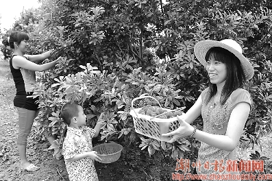 目前正是潮安县文祠镇东魁杨梅成熟季节。昨天下午,在该镇东社村阿武杨梅园里,近200亩的东魁大杨梅挂满枝头,吸引了不少游客前来观赏、品尝。 本报记者陈宏文摄