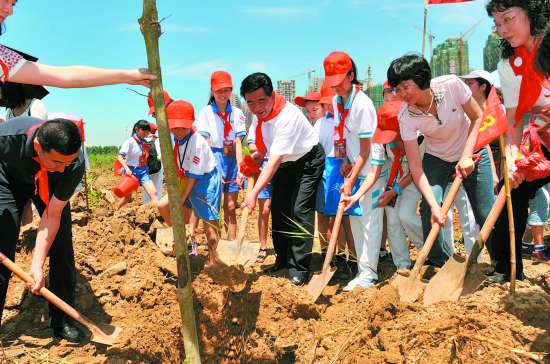市领导张应杰、徐凯参加植树活动。本次活动由市妇联、市城管局联合主办,特区青年报协办。
