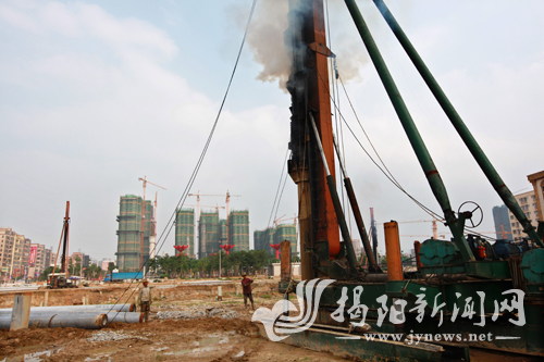 普宁市加快打造“商贸流通之都”,作为粤东首个旗舰级都会综合体项目——金莎时代中心近日正式全面启动,已进入打桩阶段(见下图。杨继斌 摄)。