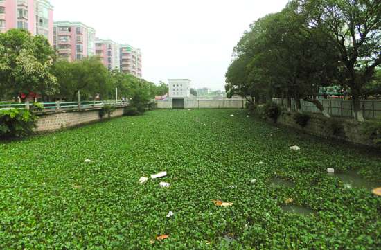 本报讯 记者黄鸿华、李伟烽报道:前段时间,市区中山公园月眉河段水体污染严重,大量水浮莲覆盖河面,河道排灌也受到影响。针对该问题,市城管局与市环保局协调配合,研究制定相应的清污工作方案,并已于近日对月眉河段实施清理工作。