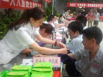 昨天,团市委组织的卫生医疗青年志愿者服务队走进伟业陶瓷公司,开展“健康直通车进企业”活动,为该企业近千名员工开展免费健康体检、送医送药等志愿活动。据了解,自市委市政府提出开展“三个年”活动以来,团市委与市卫生局组成8支潮州市健康直通车进企业青年志愿者服务队,并积极发动青商会会员企业捐赠义诊药品,切实服务全市民营企业。本报记者杨蕾实习生吴冰摄