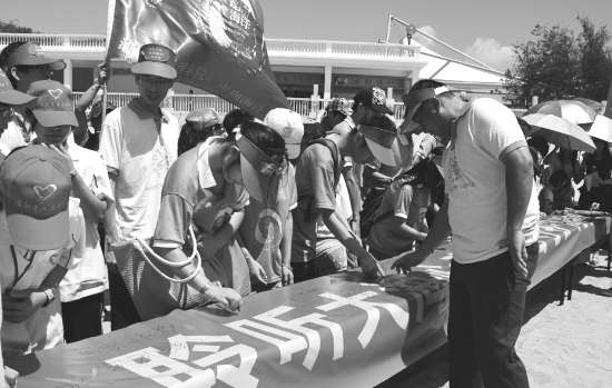 本报讯(记者 黄泽春 摄影报道) 走向海洋,聆听大海心声,信守护海誓言。昨天,由濠江区旅游局、濠江区城市建设和环境保护局、濠江区海洋渔业局及汕头大学、中信度假村酒店联合主办的中信龙虎滩“海洋生态保护”公益日活动场面十分火爆,欢聚在这片美丽迷人的海滩上的游客足足超过1万人。