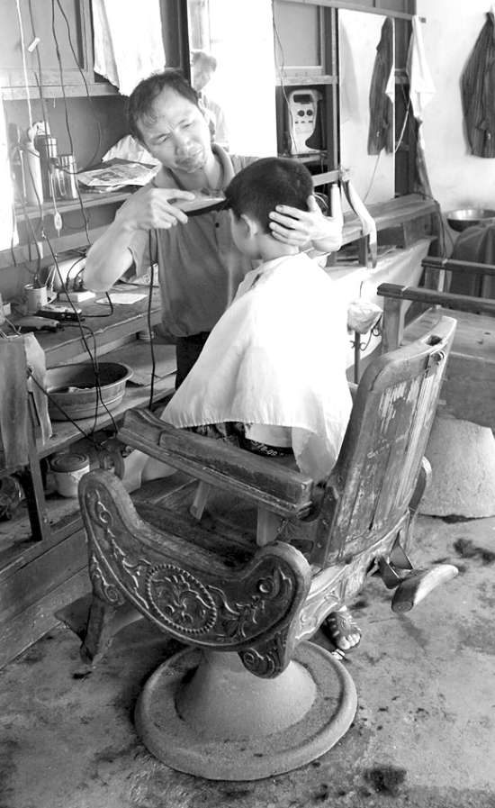 理发店在改革开放前有过风光历史,那时镇上的理发店不多,所以群众理发也就必须来此国营店。“当时理发一次0.15元,如果洗发,就再加收5分钱,理发顾客众多,后来者得排队等候,排到店门外的长队伍也成了镇上一道奇观。”改革开放后,随着现代发屋、发廊的兴起,老式理发店生存也受到挑战,门前也渐渐“车马稀”。后来,不甘老店没落的李师傅和店里其他师傅共同出资承包了理发店,重新刷新店面,并凭借他们传统的理发工艺吸引了相当部分“怀旧”的中老年顾客,理发店才得以继续延续下去。