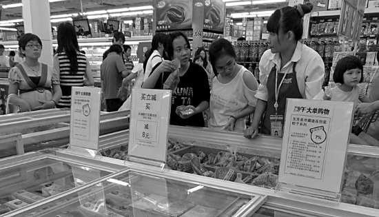 在大型超市,龙舟造型的货柜摆出来,粽子的销售占据了好大一片区域。记者发现,这些粽子很多都是用网袋、普通塑料袋包装,除了传统口味,商家还推出了芋泥红枣、梅菜扣肉等新口味。一超市负责人告诉记者,他们在进货时也注意到了,今年厂家的包装都颇为简单。礼盒装也是采取“竹篮”、“木盒”等比较有端午特色的。总体来说,今年这种“简约风”也受到市民肯定,购销的高潮将在这个双休日到来。