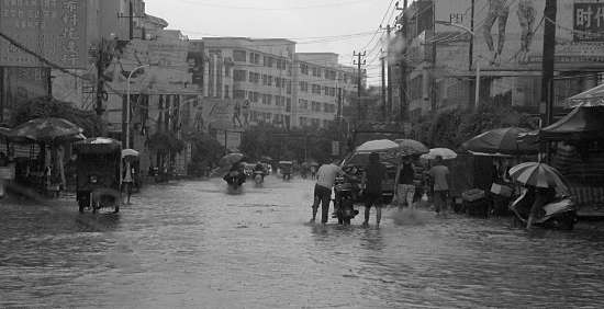 昨天下午5时左右,在潮阳区谷饶镇谷贵路,记者看到,沿途部分路段均出现积水,犹如一条条“小河”。有的车辆半路熄火,只能冒雨推车;一些积水较深的路段,临街商户都关门了,并在门前竖起木板,防止积水流入。