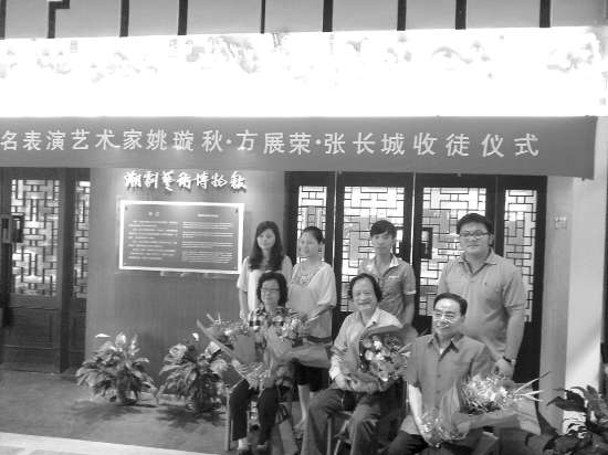 本报讯(记者李晓颦 摄影报道)在我国第八个“文化遗产日”到来之际,由广东潮剧院主办的“潮剧传承人著名表演艺术家姚璇秋、方展荣、张长城收徒仪式”昨天上午在潮剧博物馆举行,詹春湘、蔡绚娜、刘锦强、陈伟强等4名青年演员在仪式上现场拜师,成为三位“非遗”传承人的“嫡传弟子”。