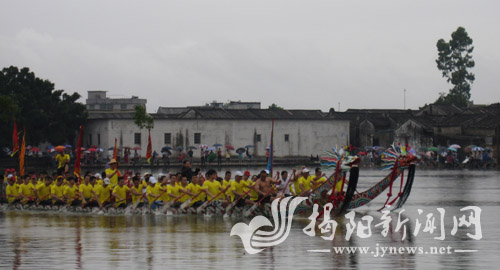 赛龙舟民俗在揭阳历史悠久,清乾隆《揭阳县志》载:“(端午)自一日起至五日,江浒竞渡龙舟,或以花红赏捷者,官府士夫各设酒馔往观。”清雍正《惠来县志》卷十三载:“端午……于溪港池塘集舟竞赛,夺取旗标。”可知清初以前,揭阳已有赛龙舟的习俗。普宁市南溪镇下尾张、南溪、北溪、新溪等4个村每年端午节赛龙舟的习俗由来已久,每逢这个节日,4个村的青壮年男子就会分成不同的团队进行表演或比赛,因此享有“普宁赛龙舟之乡”的美誉。2010年,由中国民间文艺家协会、省委宣传部、省文明办、省文联、省民间文艺家协会等单位联合主办的“第二届中国龙舟文化节”在东莞举行。来自湖北、山西、贵州、广西等省和省内部分市、区、镇的龙舟代表队参加了这一盛会。在揭阳市委宣传部、揭阳市文明办、揭阳市文联的重视指导下,以及普宁市委市政府、普宁市民间文艺家协会和南溪镇委、镇政府的大力支持下,揭阳市民间文艺家协会经过全面调查和精心筛选,向大会组委会推荐由南溪镇下尾张、南溪、北溪、新溪等4个村组成的普宁龙舟代表队参赛。经过紧张争夺,普宁龙舟代表队以优异的成绩夺得了金奖,为我市争了光,也打响了“赛龙舟之乡”的名声。