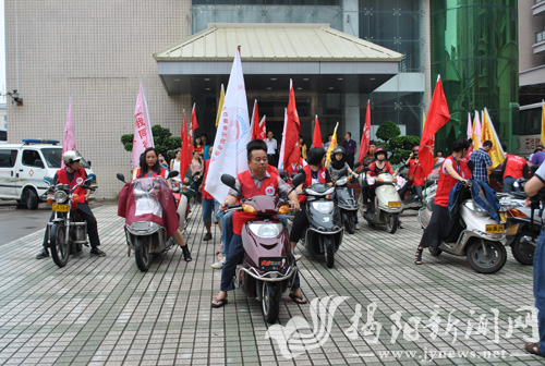 当天,20多名市红十字无偿献血志愿者协会的志愿者身着统一红马褂,骑着摩托车,浩浩荡荡从市中心血站出发,环城宣传号召无偿献血(见图。梁励民 摄)。一路上,摩托车上插着“献血救人,你我同行”等标语的彩旗十分醒目,群众纷纷驻足观看。当天活动还对荣获2010~2011年度全国无偿献血奉献奖和志愿服务奖的优秀个人进行表彰,并颁发2010~2011年度国家表彰证书。