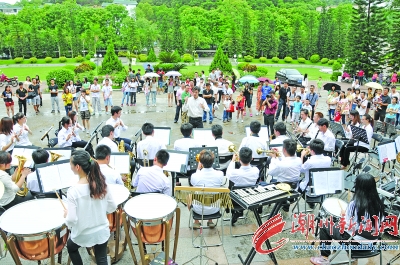 昨天上午9时多,记者来到韩师东区理科大楼前看到,现场阵容庞大的学院音乐系交响管乐团演出已吸引了不少人驻足欣赏,而大楼两旁,烹饪专业学生的食品雕刻、学院茶艺表演队的茶艺展示、学生社团组织的灯谜竞猜等活动现场也是人头攒动、热闹非凡。在现场,该院各系还设立了咨询处,派发宣传资料,接受今年参加高考的考生及家长对韩师招生计划及其新专业、新政策的咨询。