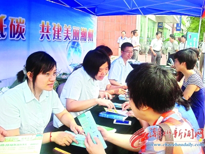 昨天是首个“全国低碳日”,市经信局和潮州供电局联合举办了主题为“践行节能低碳、共建美丽潮州”的低碳日宣传咨询活动,普及低碳节能知识,树立低碳节约理念,倡导绿色低碳的生产生活方式。图为工作人员向过往群众宣讲低碳节能知识,并发放相关宣传资料。 本报记者杨蕾摄