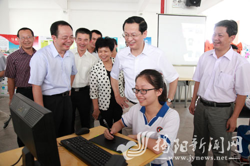 市委书记、市人大常委会主任陈绿平昨天下午到市综合中专、揭阳职业技术学院调研,强调要找准发展定位,明确办学目标,提高办学水平,加快我市职业教育发展步伐,培养更多实用型、技术型和复合型人才,为打造粤东发展极、建设粤东经济强市和区域中心城市提供强大的人才支撑。