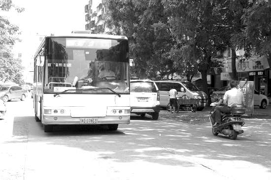 本报讯(记者 杨立轩 摄影报道)位于广厦片区的珠峰南路,当前部分路段仅有双向两车道,但途径的公交线路却多达8条,每天上下班高峰期经常“堵得一动不动”。然而,与珠峰南路直线距离约300米的天山北路,双向八车道的路面十分宽敞,则只有3条公交线路经过。近日,有市民向本报反映这一“奇怪”现象,并希望相关部门能对广厦片区的公交线路进行优化设置。
