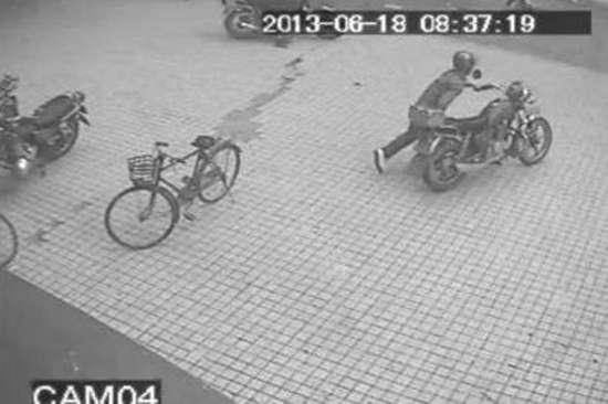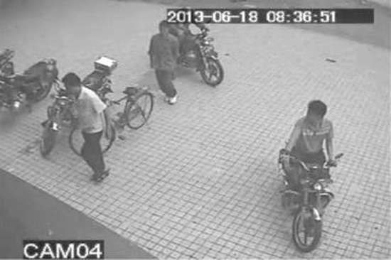 窃贼作案的地点位于大学路D浦某营业厅门口。根据网友“聆听花开声”截取的闭路监控图显示,6月18日上午8时36分28秒,一名男性市民将摩托车锁放在营业厅门口后离开。仅仅过了20秒,两名男性窃贼就同时出现在这辆摩托车旁,其中一名窃贼先试探摩托车是否有警报器,在确认没有警报后立即进行盗窃。从监控图中可见,窃贼一边开启车锁,一边猛力摇晃车头,大约用了10秒就将摩托车成功解锁。