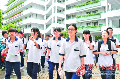 昨天下午,在市区城西中学考场,随着最后一科化学考试结束,我市中考结束。图为考生们轻松走出考场。本报记者 陈宏文 摄
