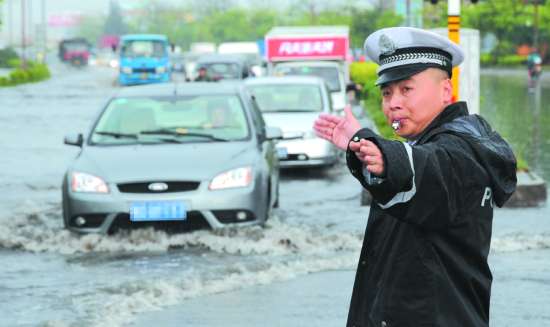继昨天凌晨出现的强降水之后,昨天中午起,我市迎来新一轮大到暴雨降水过程。特别是昨天中午12时至昨天下午3时,D城天色阴沉,雨势猛烈,滂沱大雨一阵紧接一阵,市区多条道路很快又出现积水。车辆涉水而过,水花四溅,有路人逃避不及,全身被溅湿。在下午上学高峰,由于雨势较大,不少学校周边路段交通拥挤,车辆通行缓慢。记者了解到,在这3个小时里,中心城区气象自动站录得的降雨量达60.8毫米,居全市各地降雨量之首。