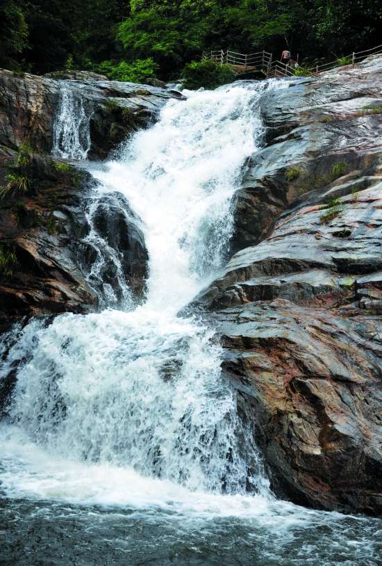 梁野山系国家级自然保护区,坐落于闽粤赣结合部的武平县境内,海拔1538米,是武平第一高峰。风景区内山水相依,有绝壁、怪石、溪流、密林等多种景观,更有大小瀑布30多处。据了解,该县为了让游客更近距离观赏山林中遍布的瀑布群,投资铺设了4800米的亲水木栈道。游客既可从木栈道上跟着水流往下走,也可从下游逆流而上,观赏一级级壮观的瀑布群。