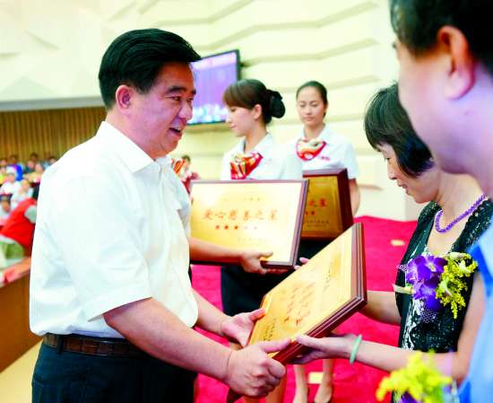 市领导为“爱心慈善之星”颁奖并合影。