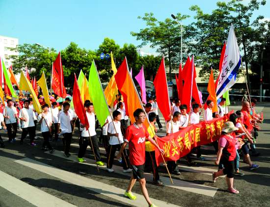 ▲我市各行各业的“爱心使者”沿途宣传慈善精神。