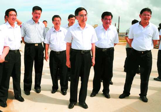 图为省长朱小丹在市委书记陈茂辉、市长郑人豪陪同下,察看了汕头东海岸新城项目施工现场。 本报记者 柯晓 摄