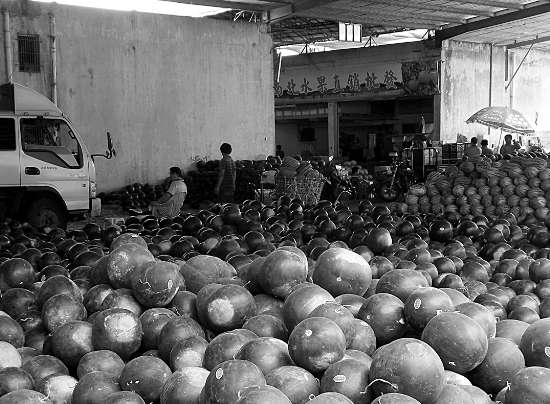 走进汕头水果中心市场,只见许多经营户门前的西瓜堆积如山,不少果贩正忙着挑瓜、过秤、装载。一经营户方先生告诉记者,西瓜销售跟当前天气同样多变,像这几天气温一高,西瓜日销量就明显上升,每天成交量高达六七万市斤,要是碰上下雨天,批发量就直线下滑了。今年雨水偏多,西瓜变得有价无市了,如现在上市的湖北黑无籽批发价每市斤1.9元至2元,去年同期才1.4元左右,但是销量却同比下降3成左右。