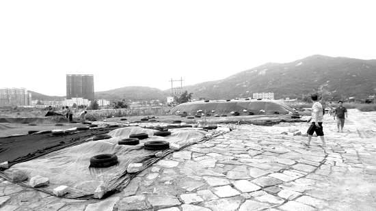 盐务所外面就是隆澳盐场的大片盐田,这个盐场共有盐田1300多公顷,是后宅镇3个盐村,共1000人口赖以生存的土地,但举目望去,却看不到盐民劳作的身影。盐务所的工作人员告诉记者,今年以来,盐田内很多时候都是这样的荒芜情景,晒盐需要天气的配合,天气连续晴好时才能产盐,但近半年来,雨水太多,盐民们根本干不了活。在盐田的田垄边,记者遇到了正在为自己存放在田垄边的小盐堆盖薄膜的盐民杨先生。一问起今年收成如何,杨先生大倒“苦水”,自从今年3月底到现在,他几乎没有下田过,“3天晴2天雨,刚刚结晶的盐一遇雨就“退晶”了,干也是白干。”