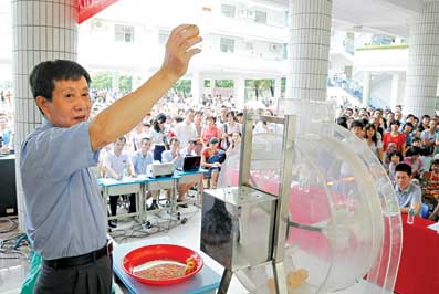 上午9点整,公证员、群众代表上台检查摇号机并试机,在市人大代表、市政协委员、市纠风办领导、市教育局有关负责人、家长代表以及群众代表的共同监督下,市绵德小学、市实验学校摇号招生正式启动。现场家长屏息凝神,心中默念着孩子报名号,祈祷幸运之神的降临。随着录取号码相继摇出,现场呈现几家欢乐几家愁景象:摇中的家长难掩欣喜之情,向家人报喜;未摇中的家长则连声叹气,一脸无奈。