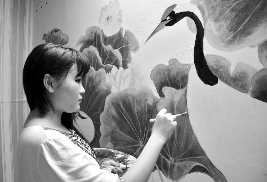本报讯(记者 邓丹丹) “90后”女孩姚丹霞和同龄人一样喜欢看漫画、打扮、逛街,但她还有一个与众不同的爱好,那就是用画笔在墙面、衣服、鞋子、石头等物体上描绘出色彩斑斓的美妙世界,特殊的爱好让她找到了自己的价值所在,也让她成为目前我市为数不多的手绘师之一。