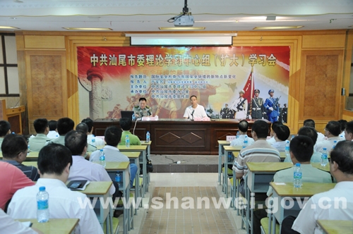 昨日(7月31日)上午,以“提高领导干部国防观念和国防素养,促进汕尾国防建设和经济建设协调发展”为专题内容的市委理论学习中心组(扩大)学习会在汕尾电大多媒体学术报告厅举行,汕尾军分区党委常委、政治部主任亓安民应邀作报告。市领导莫英群、陈少菲、苏茂荣、陈少荣、李庆新出席,市委常委、宣传部长林涛主持并讲话。 报告会上,亓安民作了题为《国际安全形势与我国安全环境的新特点新变化》的辅导报告。他从当前的国际形势及对我国带来的挑战、我国的周边安全环境的复杂性和面临的主要威胁、从战略高度谋划国家安全等方面,为在场人员上了一堂精彩生动的国防教育课。 林涛指出,普及和加强全民国防教育,是党和国家始终高度重视的重大战略问题,对于推进中国特色社会主义事业,实现中华民族伟大复兴的“中国梦”,具有重要而深远的意义。全市各级党委(党组)理论学习中心组要把国防教育纳入学习专题,组织党员干部加强学习,各级领导干部要进一步增强国防意识,并将其外化于行、内化于心,化为做好本职工作、服务汕尾加快发展大局的决心和自觉行动。 在场聆听报告的有市委理论学习中心组成员,各县(市、区)委书记、分管国防教育工作负责人和人武部长,市直(含驻汕)副处级以上单位主要负责人和分管国防教育工作负责人。(记者 钟必远 摄影 唐广源)
