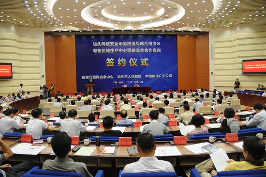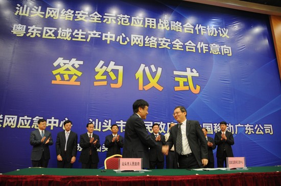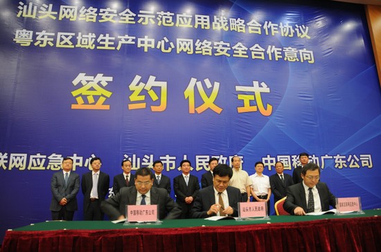 国家互联网应急中心、汕头市人民政府、中国移动广东公司签署了《广东移动粤东区域生产中心IDC项目网络安全合作意向书》