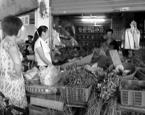 在珠合、龙眼等农贸市场和金新路、衡山路等路段,记者发现,青草摊档比以前也多了不少。在龙北市场的一家青草店,记者看到,摊档上堆了很多品种的新鲜“青草”:蛇舌草、灯笼草、青蒿、金钱草、鱼腥草、溪黄草等,不时有市民前来选购青草。摊主郑先生告诉记者,他每天凌晨3时多从青草批发市场购货,5点多开始卖,一直持续到早上8时多。最近由于天气闷热,前来购买青草防暑的市民特别多,连日来每天能卖200多公斤,销售量比之前明显增多,其中最为畅销的是蛇舌草、鸭舌宏、荷花等青草,每市斤价格大多为4元至6元。