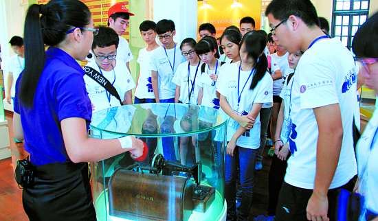 日前,汕头开埠文化陈列馆迎来了一支由60多名汕台两地学生组成的参观队伍,留声机、老式手摇电话机、煤油灯、电子管收音机等一件件古老的文物让他们倍感新鲜,不时地拿出手机拍照。