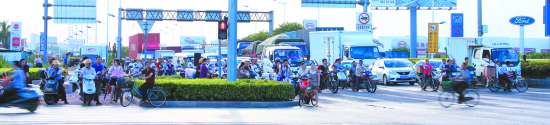 本报讯 记者李德鹏、实习生蔡雨帖摄影报道:金凤路自2010年全线开通以来,成为贯穿汕头东西城区的“大动脉”。特别是作为连接潮州、揭阳的交通节点,金凤路与潮汕路交界更成为“汕头市交通最繁忙的交通要塞”之一,大量通往三市的机动车汇集于此,加上部分司机不文明的驾驶行为,该路口已经成为每日上下班高峰期的交通“黑点”。