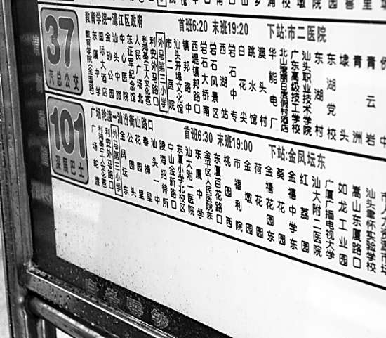 据了解,本次修改编号基本保持原有线路顺序,有部分线路有所修改。如,从小公园开往澄海千果山旅游区方向的18路更改为101路;从广场轮渡开往广厦新城方向的101路更改为18路。昨天下午,记者来到外马路第三小学公车站看到,虽然途径这里的101路已经改名为18路,但在南北两个公交车站站牌上却依旧印着原来的路线名101路,而记者找遍站台,并没有看到相关的改名通知。随后,记者又来到相隔一站的利安外马路口车站,这里同样有原来的101路经过,不过站牌上的线路名已经更换过,显示为18路,此外,记者还发现,站牌上途径的站点与外马路第三小学公车站上的还存在一些差异,更容易使人混淆。