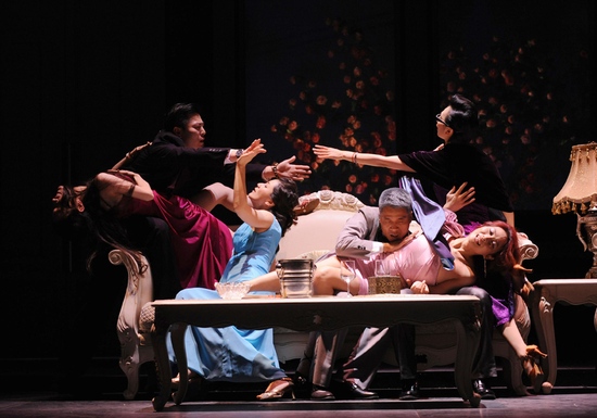 看的时候还要欣赏它。首先从剧名来讲,比如一个《雷雨》,一个《欲望花园》,它们的剧名本身都有深刻的内涵。一个象征着时局的动荡。一个象征人性的弱点。另外,要注意舞美和人物表演。《欲望花园》的舞美和人物表演非常简捷大方,场景变换有虚有实,非常自如。