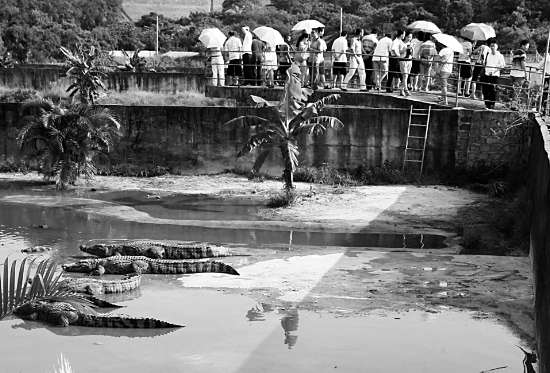 潮南区陇田镇西湖村鳄鱼养殖特色产业吸引了众多游客参观。据了解,西湖鳄鱼湖首期建设鳄鱼池18个,面积60亩,放养鳄鱼1000条。在发挥经济效益的同时,借鉴泰国和广州番禺的饲养经验,开发成集“产销游”一体的产业链,提高旅游观赏水平,增加旅游收入,带动一方经济发展。姚军 摄