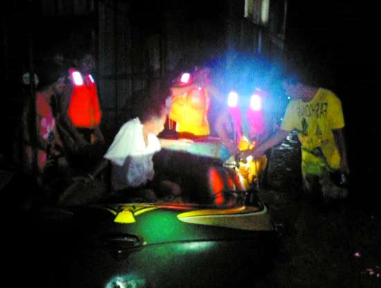 本报讯 记者李伟烽摄影报道:昨日凌晨,因连日暴雨,潮南峡山街道大宅村受灾严重,现场有大量群众被困,请求救援。接到报警后,潮南消防大队立即出动官兵携带橡皮艇、救生衣、救生圈等器材前往现场处置。